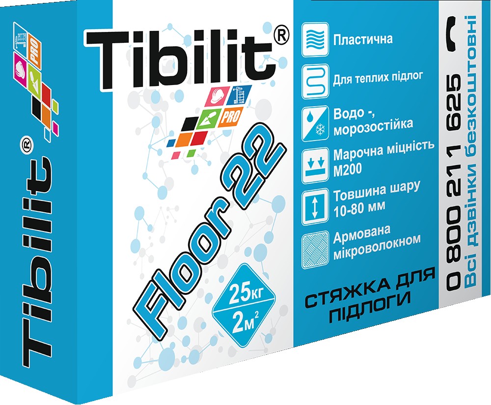 Стяжка цементна «Floor 22» призначена для вирівнювання основи під фінішне покриття бетонних підлог ,товщиною шару від 10 до 80*мм. Стяжка може застосовуватися для укладання і ремонту підлог всередині і зовні будинків, ремонту сходів та інших бетонних елементів, для підготовки основи під самовирівнюючі розчини або під різні покриття, такі як: лінолеум, ламінат, паркет, керамічна плитка та ін. Улаштування стяжки може виконуватися в системах теплих підлог.