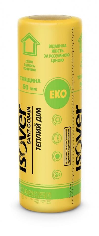 ISOVER Теплий Дім в рулонах – універсальна теплоізоляція відмінної якості за розумною ціною, виготовлена за запатентованою технологією волокноутворення TEL. Матеріал виготовляється з природних компонентів – пісок, сода, вапняк.