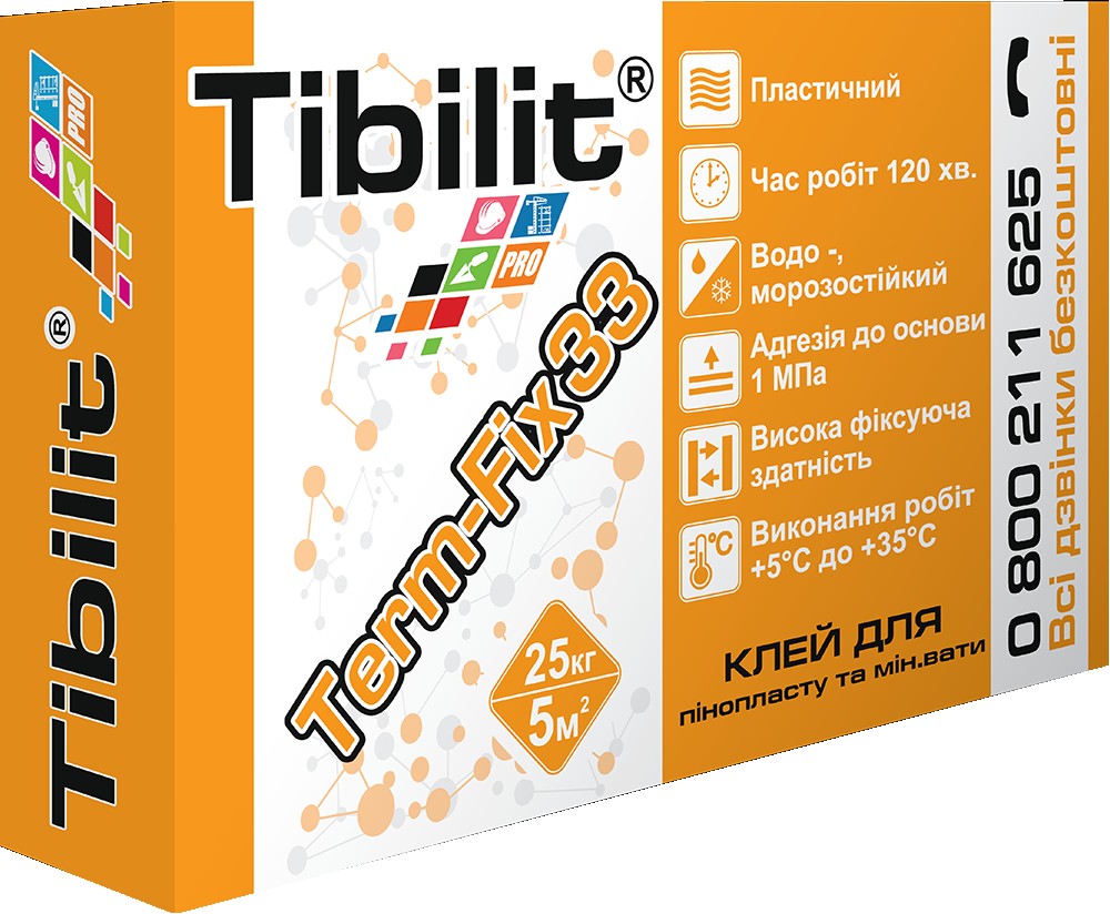 Клейова суміш «Term-Fix33» призначена для кріплення пінополістирольних та жорстких мінеральних плит при утепленні фасадів будинків і споруд різного призначення. Клейова суміш ефективна на поверхні з цегли, бетону, пінобетону, цементно-вапняної, цементно-піщаної та інших мінеральних основах, як всередині, так і зовні.