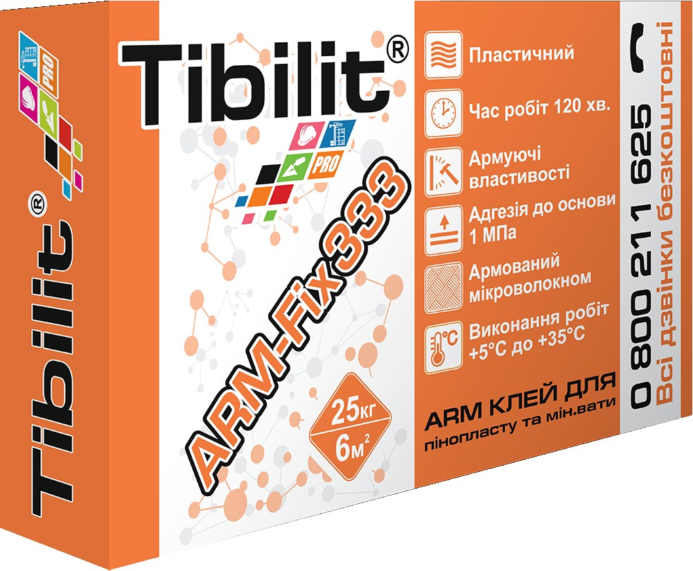 Клейова суміш «ARM-Fix 333» призначена для кріплення пінополістирольних та жорстких мінеральних плит, а також улаштування по ним захисного шару, армованого лугостійкою склосіткою при утепленні фасадів будинків і споруд різного призначення. Клейова суміш ефективна на поверхні з цегли, бетону, пінобетону, цементно-вапняної, цементно-піщаної таінших мінеральних основах, як всередині так і зовні. Рекомендована для приклеювання плит з екструдованогопінополістиролу з шорсткою поверхнею або з термічно нанесеним рельєфним малюнком. Гідрозахисний шар може служити основою під опорядження фінішними декоративними штукатурками, шпаклівками та фасадними фарбами.